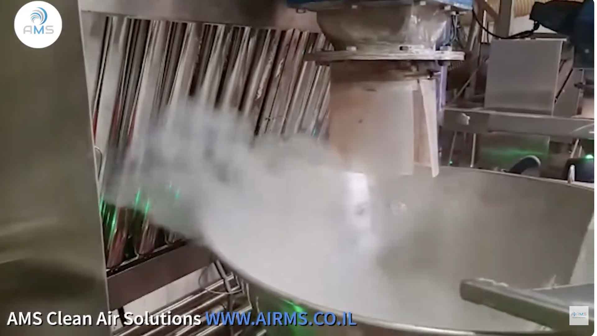 שאיבת תרחיף אבק מחמש עמדות שפיכה וערבוב חומר בתעשיית המזון למען שמירה על מרחב נשימה נקי ממזהמים וחלל עבודה נקי